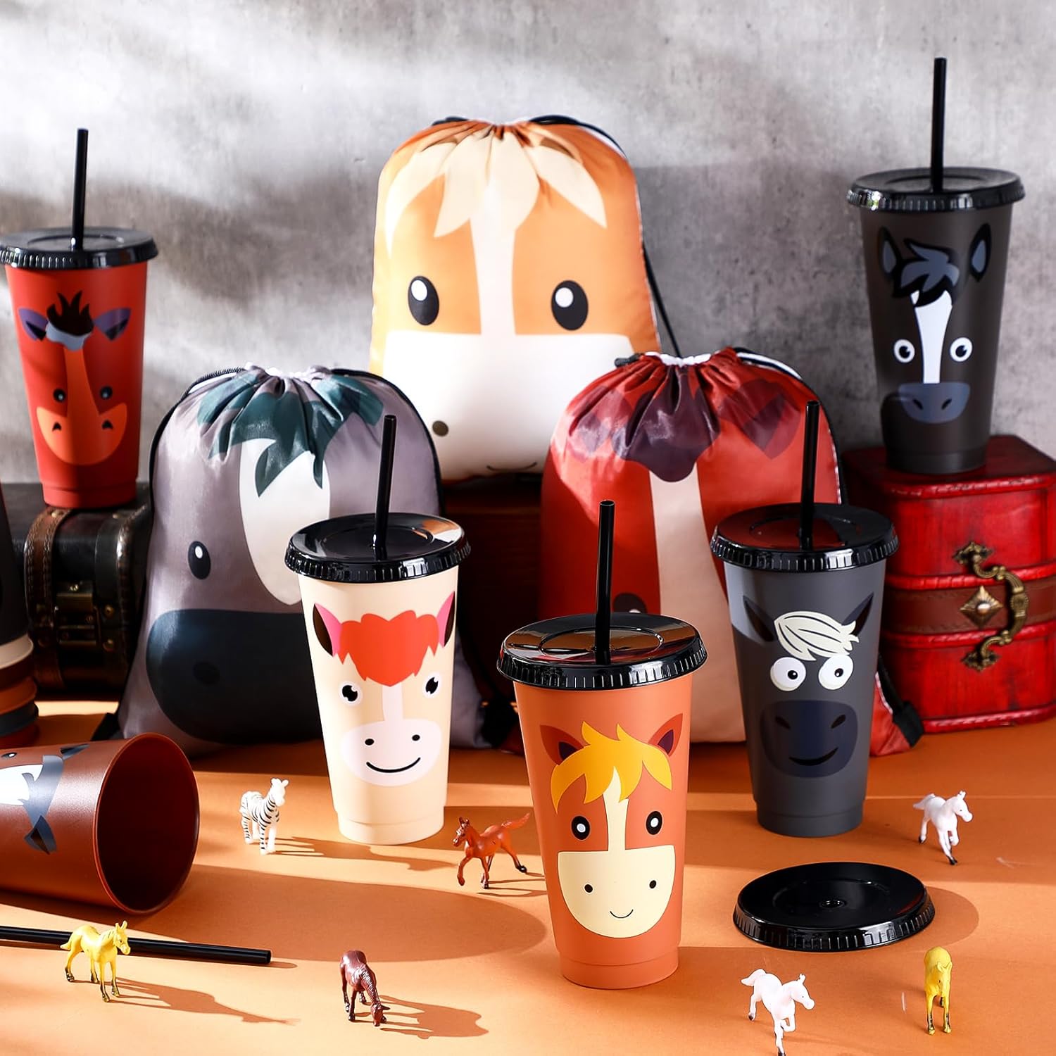 | Included Components | 12 x Horse drawstring bag, 12 x Horse plastic cups with lids and straws |