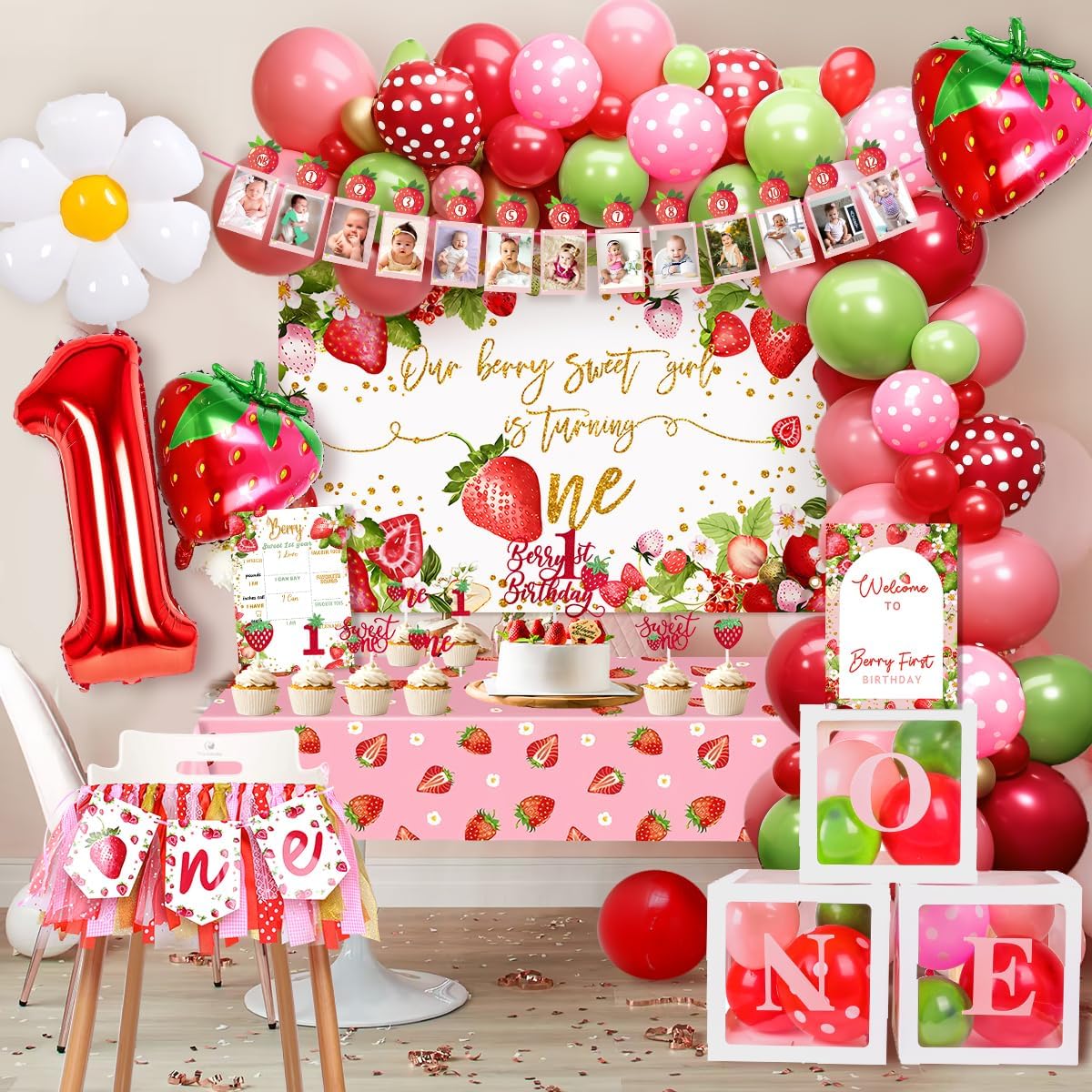 MOVINPE Strawberry 1st Birthday Decorations for Girls, Berry First Birthday decor Party Supplies, Berry Sweet One Berry First Birthday Decor, Strawberry Theme Backdrop Party Decor