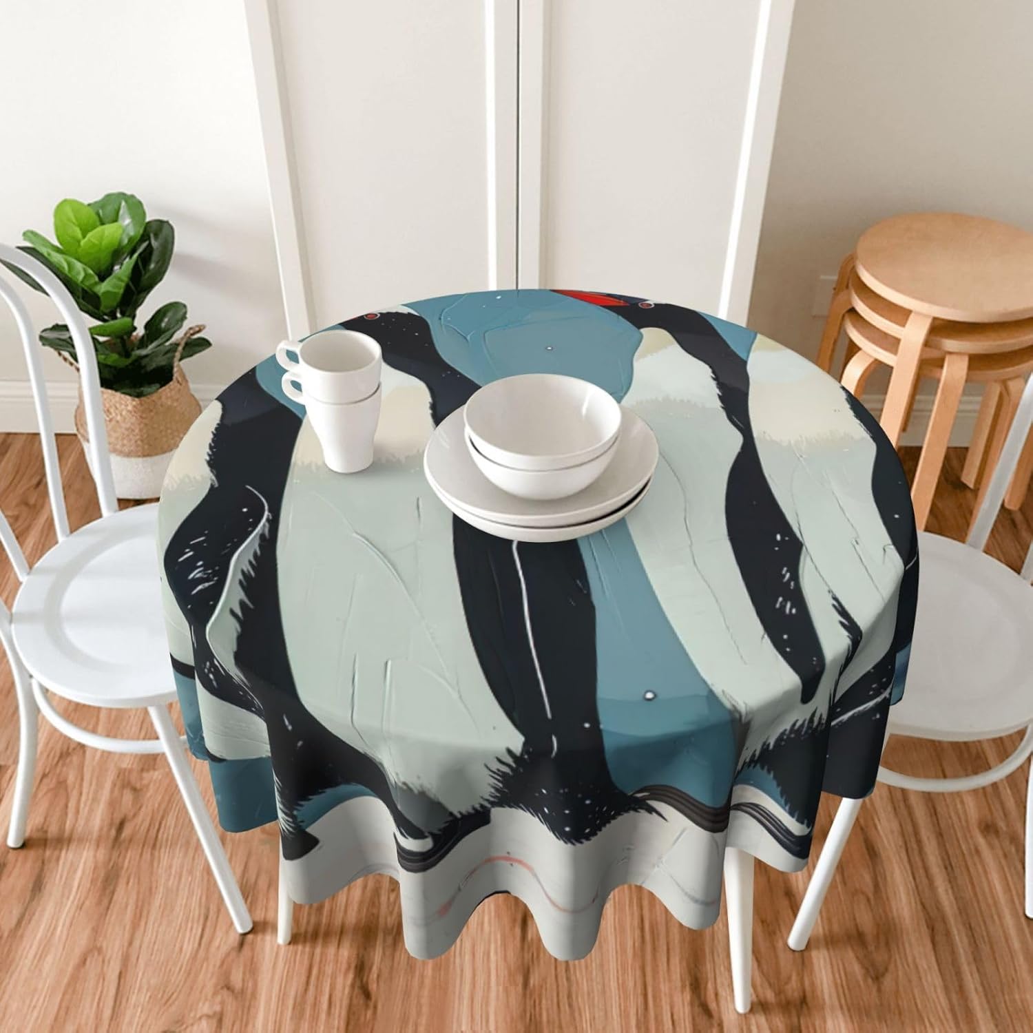 Made from premium peach skin velvet, the Penguin print Tablecloth provides a perfect blend of durability and softness. Its anti-wrinkle properties ensure that it stays smooth and neat, making it ideal for everyday use. This tablecloth protects your dining surface from damage while enhancing the aesthetic of your dining area with its classic, elegant print. The size of 60 x 60 inches fits most tables and adds a refined look to your space. Its washability makes it easy to maintain, ensuring that it continues to look beautiful for years to come.