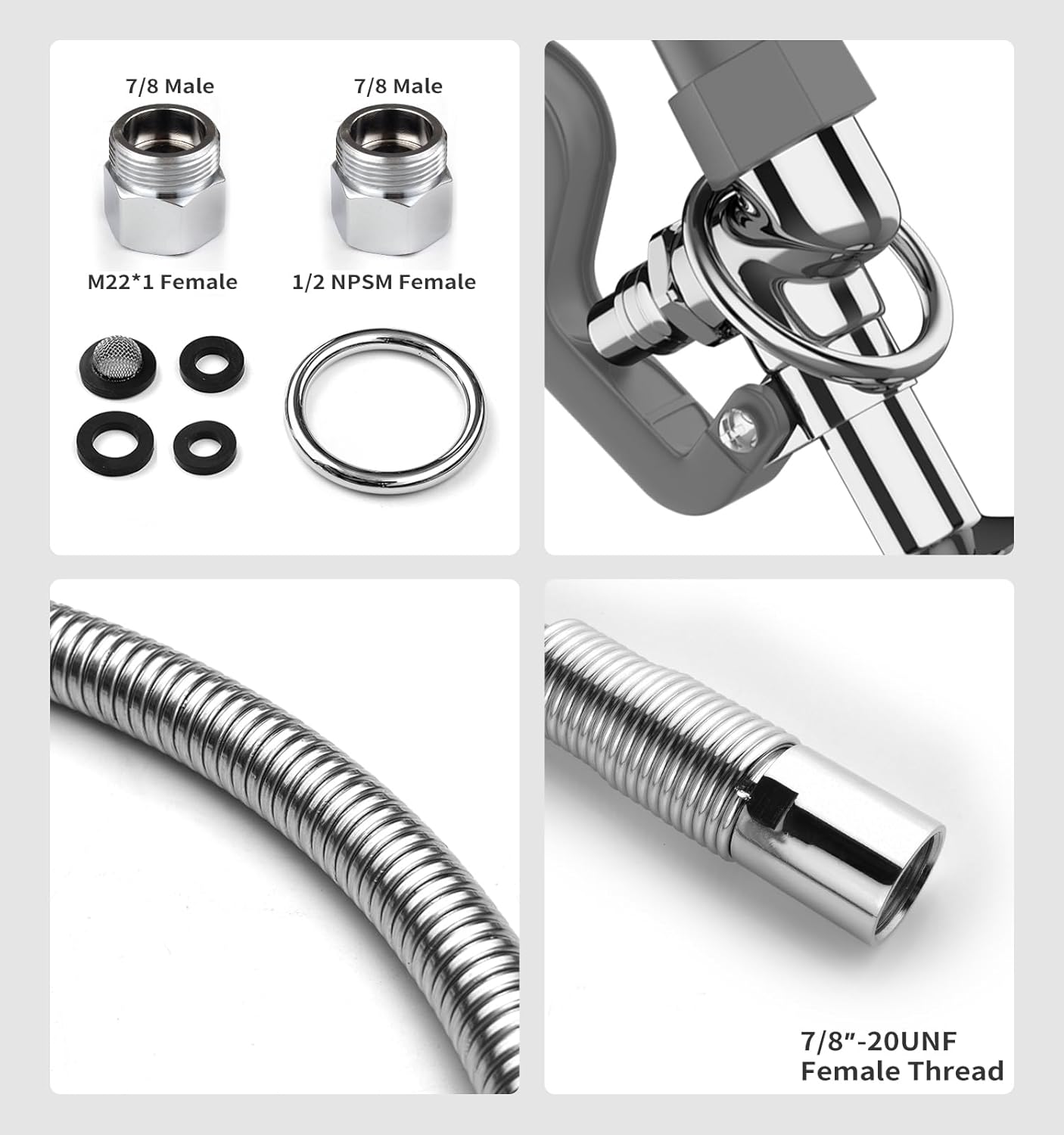 | Included Components | Adaptor, Gaskets, O-ring, Pre Rinse Sprayer, Stainless Steel Hose |