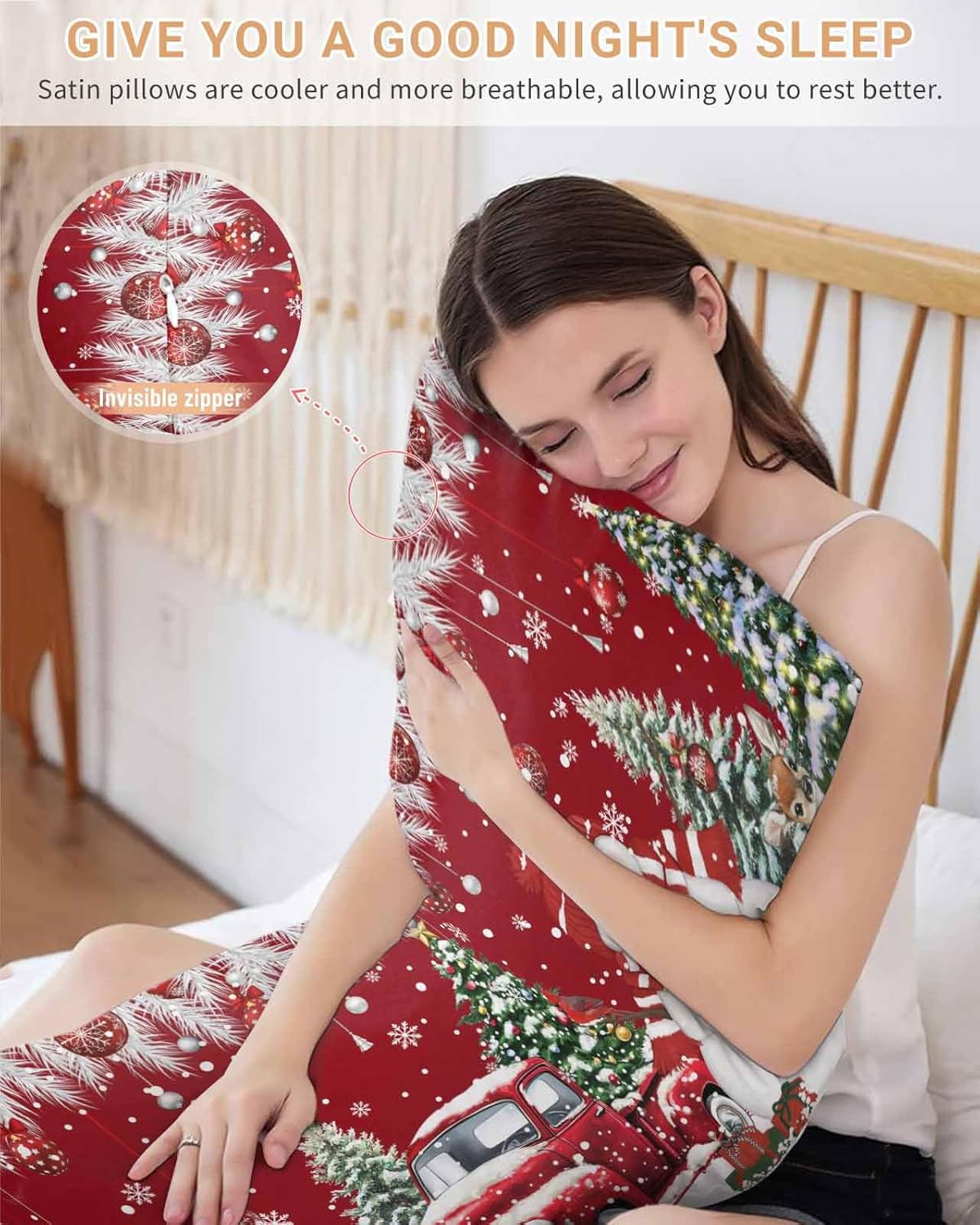Soft And Comfortable Elegant Satin PillowcasesHelp You Sleep Well - Our satin pillow cases for hair/skin is made of premium satin, which feels soft and comfortable, as if you are on a cloud, allowing you to enjoy a whole night of comfortable sleep.Care Skin - Our throw pillow covers feels smooth and has good breathability, which can avoid your skin from becoming greasy during sleep, allowing you to wake up radiant every morning.Care for Your Hair - Our satin pillow shams minimizes friction, reduces frizz and avoid tangles. This lumbar pillow covers is a must-have to maintain the natural shine and texture of your hair, allowing you to care for your hair while sleeping.Stay Cool - Tired of waking up feeling overheated Our outdoor lumbar pillow shams keeps you cool all night. The breathable fabric of this home decor pillow cover naturally regulates your body temperature, helping you stay cool and comfortable, avoiding night sweats, and is ideal for hot sleepers.Stylish And Elegant Design - Upgrade your bedding with our exquisite and elegant satin pillow case with zipper. Available in a variety of rich colors, this couch throw pillow cover will complement any bedroom decor and add a touch of sophistication to your sleeping space. Whether for yourself or as a gift, this farmhouse pillow covers with zipper is a thoughtful and stylish choice.Easy to Care - Our outdoor chaise lounge head pillow cover has high durability. Made of premium material, this summer decorative throw pillow cases retains its luster after multiple washes and is not easy to fade or pill - just wash this home decor pillow case on a gentle cycle in the washing machine and let it air dry for continued use, making this bed pillow cover funda de almohada de raso an ideal choice for busy families.