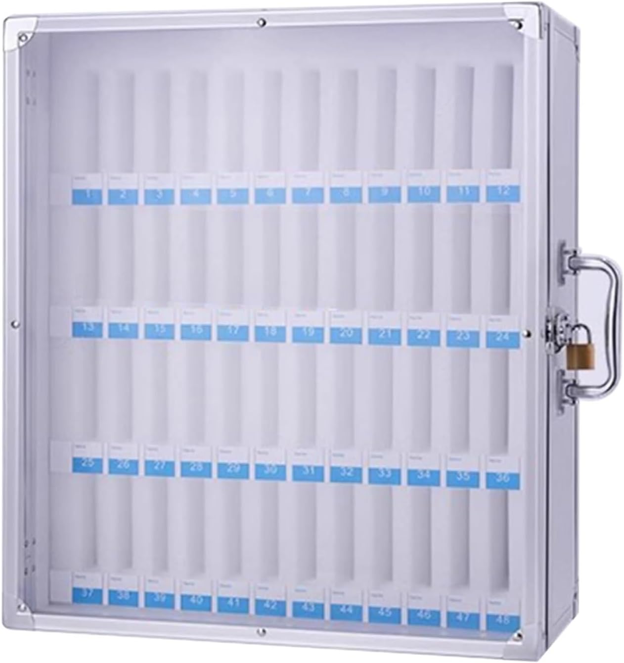 Introducing the Mobile Phone Storage Cabinet, a robust aluminum alloy lock box designed specifically for environments such as classrooms, meeting rooms, gyms, and factories. This efficient mobile phone storage solution allows you to securely store multiple devices while keeping them organized and easily accessible. The wall-mounted design ensures a space-saving installation, while the integrated security lock provides peace of mind, safeguarding your devices against unauthorized access. Additionally, the cabinet's portable option makes it a versatile choice for various settings, whether you need it in a classroom or at a corporate event. Constructed with durability in mind, this mobile phone lock box features a spacious layout, making it perfect for managing and protecting valuable devices in educational, professional, or recreational spaces. Its sleek and modern appearance fits seamlessly into public areas like offices, mobile phone repair shops, and conference rooms, enhancing the overall ambiance. To ensure your product arrives in optimal condition, we carefully package each unit with protective materials to prevent any damage during transit. Product Details: - Name: Lockable Mobile Phone Storage Cabinet - Material: High-quality stainless steel and acrylic - Capacity Options: 8, 12, 24, 36, 48, or 60 slots - Dimensions: 22.7 cm x 11.8 cm x 28.7 cm (Length x Width x Height) - Installation: Wall-mounted or desktop - Color: Elegant silver Order your Mobile Phone Storage Cabinet today to create a more organized and secure environment for your essential devices!